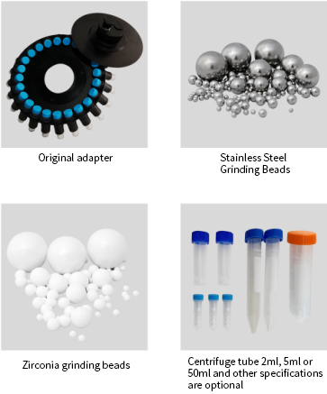 1. Put the sample and grinding balls into the grinder (configured with grinding jar or centrifuge tube/adapter);