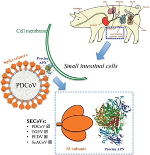 由TGEV引起的豬傳染性胃腸炎(TGE)是一種高度接觸性消化道傳染病,以嘔吐、水樣腹瀉和脫水為特征。TGEV在短期內能引起各種年齡的豬100%發(fā)病,死亡率也高,2周齡內的仔豬死亡率達90%-100%,康復仔豬發(fā)育不良,生長遲緩。由PEDV引起的豬流行性腹瀉(PED)是一種接觸性腸道傳染病,其特征為嘔吐、腹瀉、脫水。臨床變化和癥狀與TGE很相似,可發(fā)生于任何年齡的豬,年齡越小,癥狀越重,死亡率高,尤以哺乳豬受害嚴重。PDCoV是一種新型豬腸道冠狀病毒,可引起5-15日齡哺乳仔豬腹瀉和嘔吐,迅速脫水,衰竭而亡,發(fā)病率和死亡率高達50%-100%。2018年5月14日,發(fā)表在美國《國家科學院學報》上的研究顯示,近年來在多國發(fā)現(xiàn)的PDCoV具有在物種間傳播的可能性。