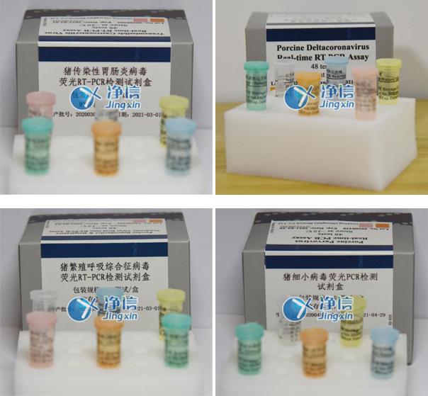 為了解決大型豬場對排查不明原因豬腹瀉的需要,本公司在分析了上述病毒大量國內外基因序列的基礎上,原創(chuàng)性地設計了獨特的引物和探針,開發(fā)了“豬傳染性胃腸炎病毒、豬流行性腹瀉病毒、輪狀病毒A型三重熒光RT-PCR檢測試劑盒和“輪狀病毒C型豬德爾塔冠狀病毒雙重熒光RT-PCR檢測試劑盒兩款試劑盒。
