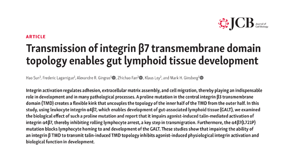 2020年10月27日,加州大學(xué)圣地亞哥分校醫(yī)學(xué)院,聯(lián)合法國(guó)圖盧茲大學(xué)和康涅狄格大學(xué)衛(wèi)生院的科學(xué)家在Journal of Experimental Medicine(JEM) 上在線發(fā)表了題為Distinct Integrin Activation Pathways for Effector and Regulatory T cell Trafficking and Function的工作(來自作者為孫昊博士)。