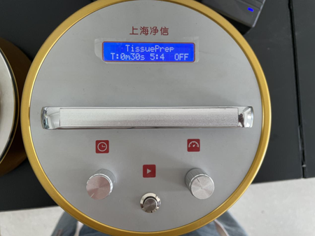 接下來,我們將裝有豬肺組織的研磨罐固定在快速組織研磨儀上,根據(jù)實(shí)驗(yàn)需求設(shè)置好研磨時間、轉(zhuǎn)速等參數(shù)。按下開始按鈕后,研磨儀便開始工作。此時,我們可以清楚地觀察到豬肺組織在研磨罐中逐漸被破碎成細(xì)膩的糊狀物,此次的研磨效果良好。