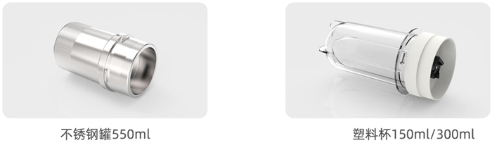 不銹鋼罐550ml(可接冷水機款)、塑料杯150mL/300mL(可選高溫滅菌)