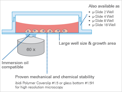 l也可提供玻璃底的載玻片: μ-Slide 1 Well?Glass Bottom 適用于特殊顯微鏡應用